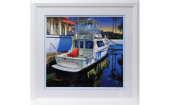 - 【ふるさと納税】版画 鈴木英人 「碧い波止場」 シリアルナンバー入り フレーム付き 直筆サイン入り インテリア アート 絵画 絵 イラスト 風景 船 逗子 ヨット 額縁