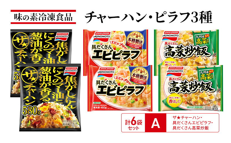 【ふるさと納税】味の素冷凍食品 チャーハン・ピラフ3種 計6袋セットA 冷凍食品 炒飯 冷凍炒飯 エビピラフ 高菜炒飯 ご飯 冷凍 レンジ 電子レンジ 簡単 簡単料理 千葉市 千葉県 イオンリテール お届け:ご入金確認後、各月25日までのお申込みで翌月中旬の配送