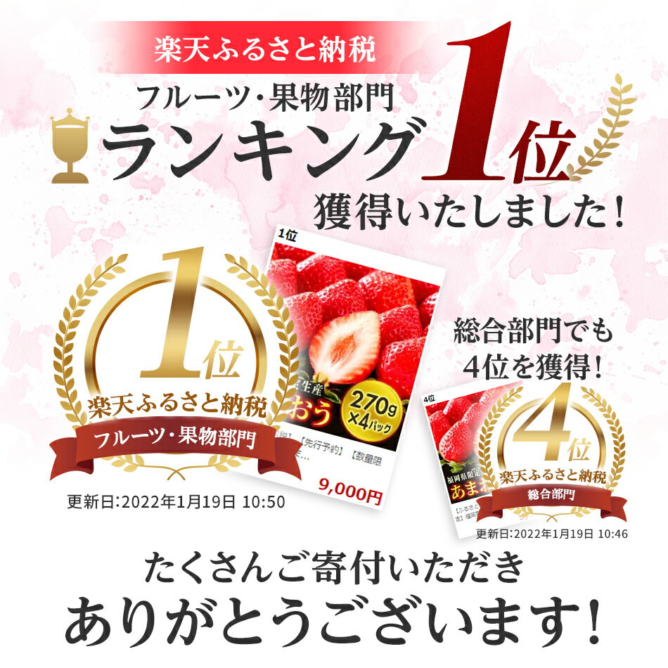 - いちご あまおう 先行予約 福岡育ち あまおういちご 合計1080g 約270g×4パック イチゴ 苺【2023年2下旬〜3月順次発送】 おすすめ 福岡県 大木町のあまおうをお試しください