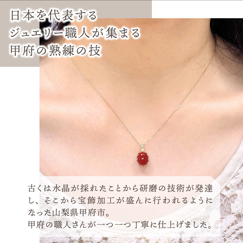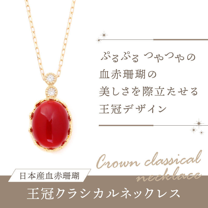 - 宝飾の町甲府から!!K18 日本産血赤珊瑚王冠クラシカルネックレス【TK-9358】