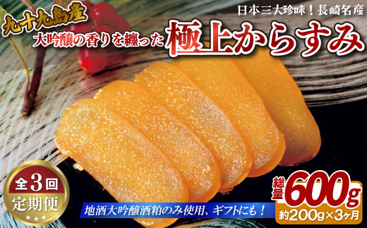 《定期便》【総計600g】九十九島からすみ(大吟醸仕込み)約200g【3回お届け】