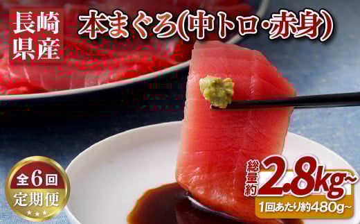 《定期便》長崎県産本まぐろ(中トロ・赤身)480g以上【6回お届け】