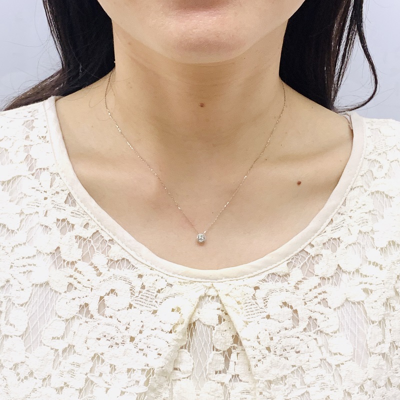 【K10ホワイトゴールド】SIクラスダイヤモンド0.1ctシンプルネックレス【TW-13385】
