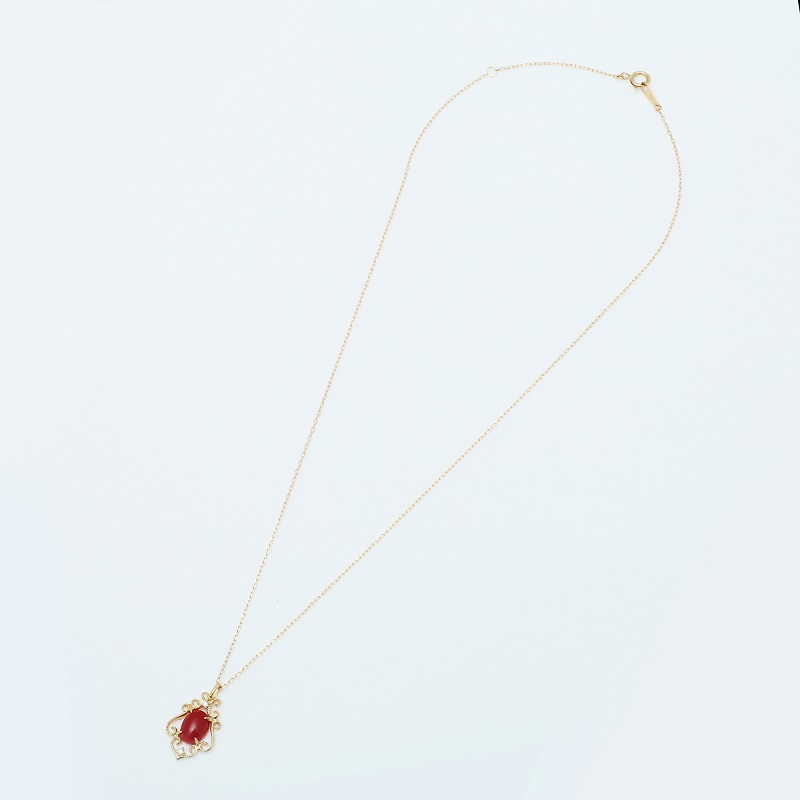 - 【K10日本産血赤珊瑚】エレガントペンダントネックレス【TK-9607K10】