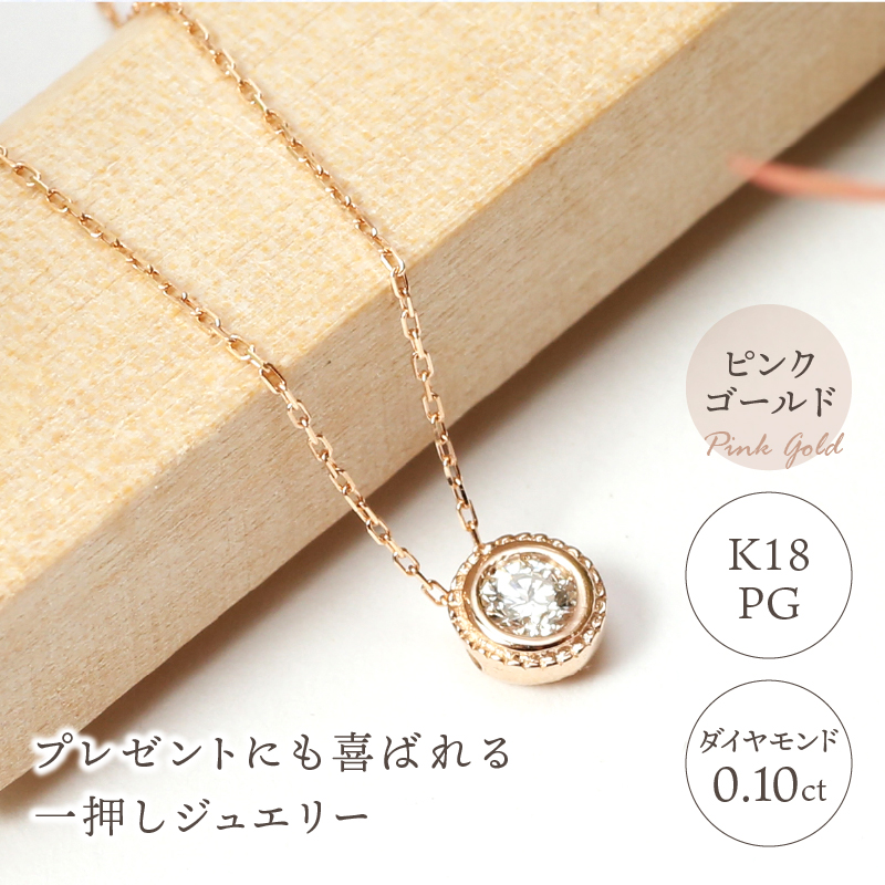 【K18ピンクゴールド】SIクラスダイヤモンド0.1ctシンプルネックレス【TK-12854】