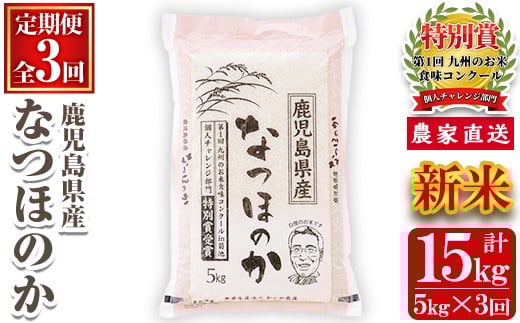 - s120 【令和7年産・新米】【定期便】鹿児島県さつま町産 なつほのか(5kg×3ヶ月・計15kg) 鹿児島 白米 お米 こめ コメ ごはん ご飯 ブランド米 10kg以上 新米 【かじや農産】