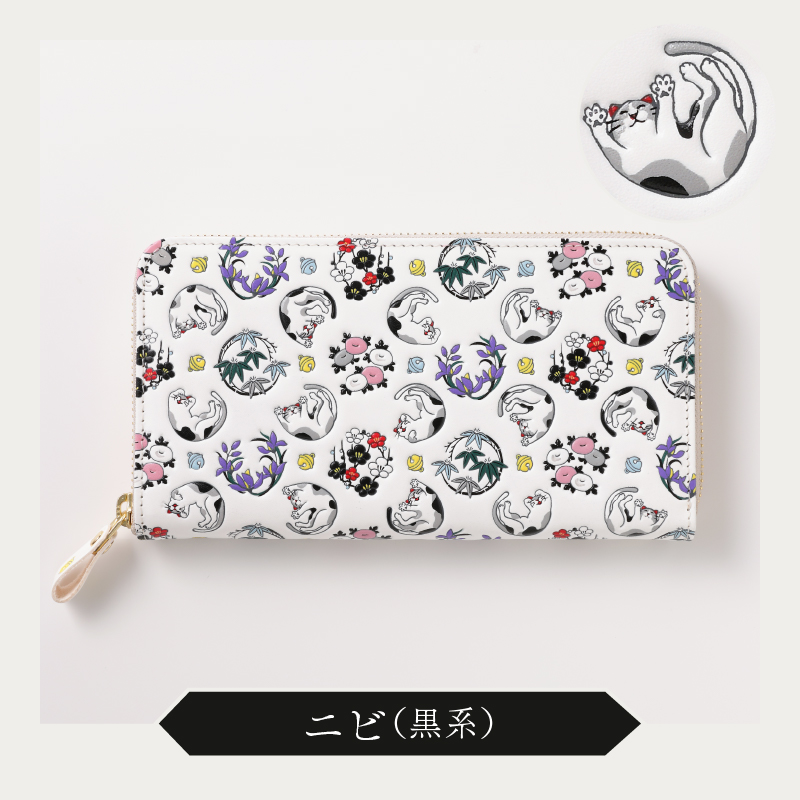 - 【浅草文庫】ラウンド長財布〈猫柄〉(カラー:ニビ(黒系))