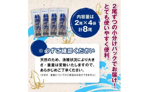 するめいか 2尾 4袋 計8尾 冷凍便 釣りたて 急速冷凍 産地直送 小分け 新鮮 いか いか飯 刺身 いかソーメン 刺し身 海産物 魚介 イカ焼き 塩辛 フライ いかのまち酒田 いか釣り漁船団 山形県漁業協同組合 山形 酒田 SB0401