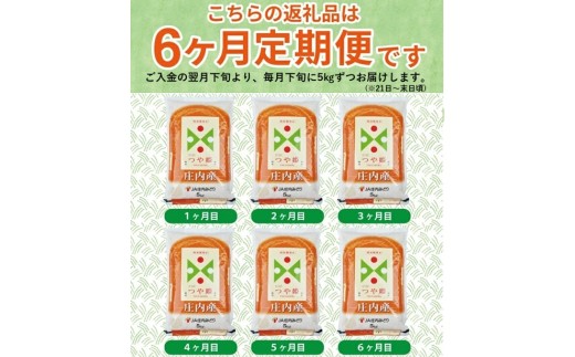 ≪6ヶ月定期便≫ 特別栽培米 つや姫 5kg×6ヶ月 計30kg 山形県庄内産 毎月下旬頃にお届け 東北 酒田市 庄内地方 庄内平野 お米 精米 白米 ブランド米 庄内米 ごはん ご飯 農協 JA 産地直送 JA庄内みどり SI0059