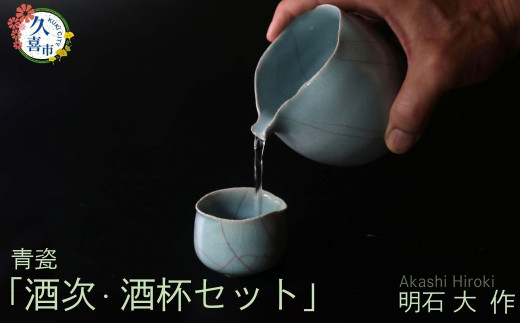 - 陶磁器 酒次・酒盃 セット 限定1点限り(青瓷、桐箱付) 現代茶陶展 受賞作家|おちょこ 徳利 酒 日本酒 明石大 作品 贈答 贈り物 せいじ プレゼント 特別 徳利 特産 陶芸 陶器 焼き物 おしゃれ インテリア 伝統的工芸品 和 風情 美しい 茶道 アーティスト 陶芸家 有名 日本 美しい 陶芸 一点もの 映える 埼玉県 久喜市