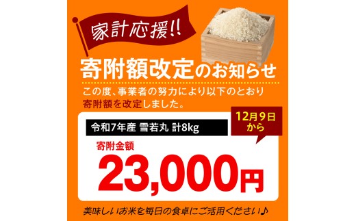 【 令和7年産 】 雪若丸 計8kg ( 2kg×4袋 ) ブランド米 2025年産