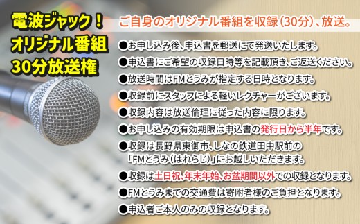 - 【はれラジ】電波ジャック! オリジナル番組放送権|FMとうみ(ラジオ30分放送)