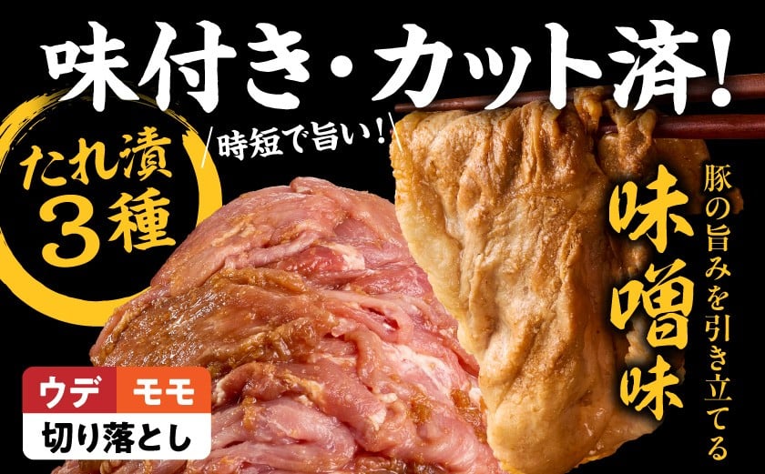 食べ比べ!宮崎県産豚肉のたれ漬3種【総重量4.5kg】_AC-N502_(都城市) 宮崎県産豚肉 3種類の味 味噌 生姜 焼肉たれ 大容量 おかず お弁当 炒めるだけ 焼き肉 BBQ