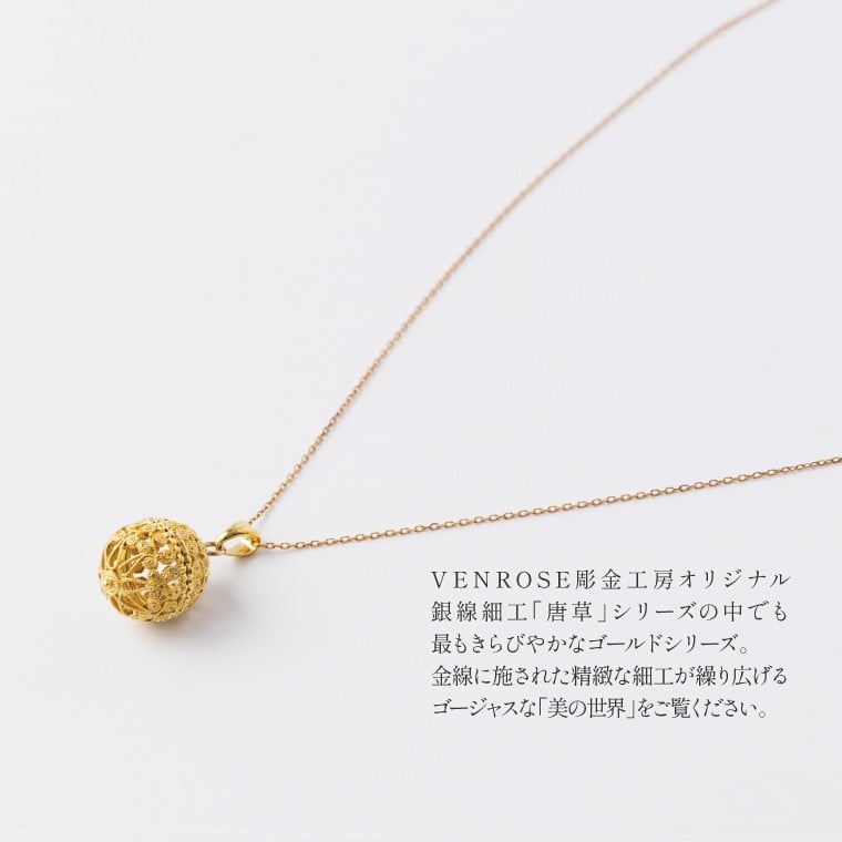 - 唐草ペンダント(鞠)18K ゴールド金線細工 〈 ネックレス アクセサリー ペンダント 18金 ジュエリー 金線細工 唐草 工芸品 職人 おしゃれ フォーマル レディース ギフト プレゼント お祝い 記念日 母の日 誕生日 結婚式 パーティ イベント チェーン付き 〉