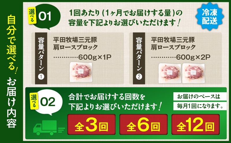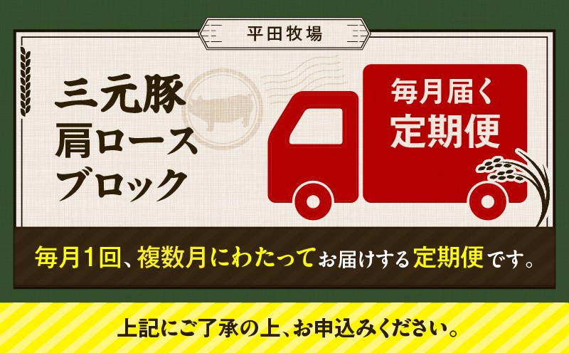 【全3回 毎月定期便】日本の米育ち平田牧場三元豚肩ロースブロック 600g T036-T10-01