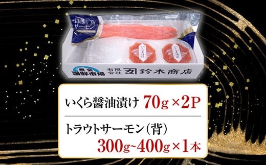 A-14224 いくら醤油漬け70g×2P・刺身用トラウトサーモン(背)300~400g×1本