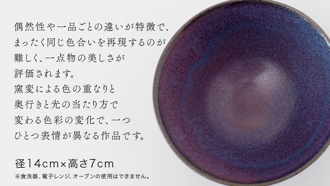 【燿彩窯変紫焔釉】抹茶茶碗 (小野寺裕司 作) 径14cm×高さ7cm | 茶碗 湯飲み 夫婦湯飲み 陶器 陶芸 お茶 食器