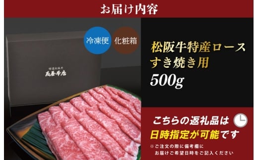 [年内配送12/22まで] 特産松阪牛 ロース すき焼き 500g 友屋本店 極上の柔らかさ 化粧箱入り 柔らかい 霜降り ブランド牛 国産 冷凍 焼肉 焼きしゃぶ 焼きすき 松坂牛 松阪肉 和牛 牛肉 三重県 A4 A5 特産 NT3