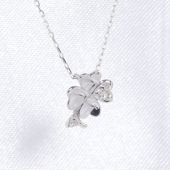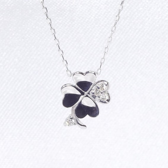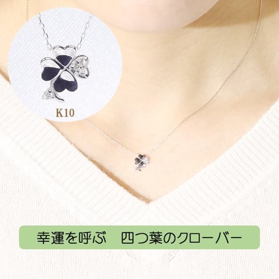 K10WG 四つ葉クローバー ダイヤモンド ペンダント ダイヤモンド ネックレス ジュエリー ホワイトゴールド イエローゴールド ピンクゴールド 0.03ct 小豆 山梨県 甲斐市 BQ-7