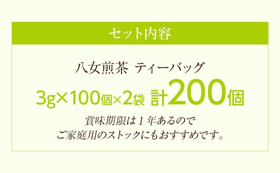 - 八女茶 煎茶ティーバッグ 3g 200個 (100個入り×2袋) お茶 緑茶 八女 お土産 取り寄せ グルメ 福岡土産
