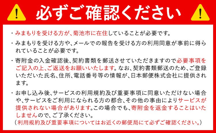 - みまもり訪問サービス 12ヶ月(年12回) 日本郵便株式会社《90日以内に出荷予定(土日祝除く)》熊本県 菊池市 安否確認 見守り みまもり 家族 実家 親 訪問 安心 送料無料