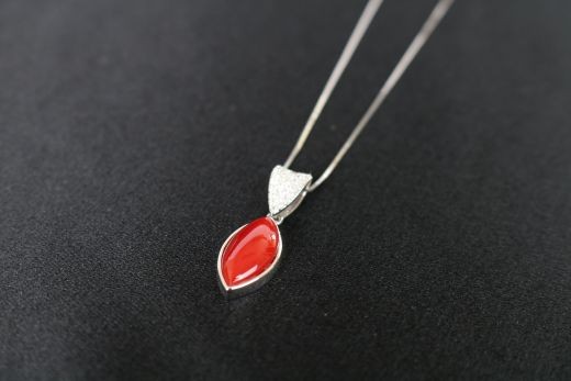 - 【高級品】赤サンゴのドロップ型とダイヤのペンダント | アクセサリー ネックレス ジュエリー 珊瑚 赤珊瑚 宝石 サンゴ プレゼント クリスマス バレンタイン カジュアル レディース 贈答用 人気 高価 高級 おすすめ ふるさと納税サンゴ ふるさと納税ネックレス 高知県 室戸市