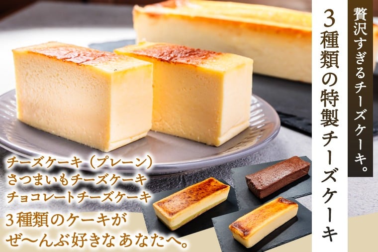 - 7CHEESE 「チーズケーキ 3種セット プレーン/さつまいも/チョコレート」 チーズケーキ プレーン さつまいも チョコレート セブンチーズ 濃厚 お菓子 スイーツ 洋菓子 デザート 贅沢 鹿嶋市産 茨城県(KEF-4)