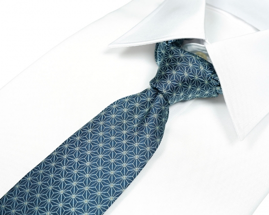 - 郡内織物「富士桜工房」シルクネクタイ 麻の葉 青碧 FAA1019