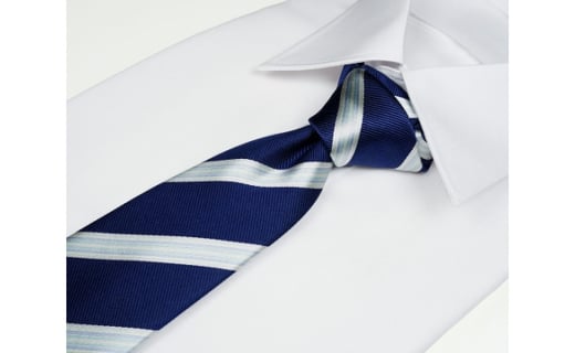 - 郡内織物「富士桜工房」シルクネクタイ ぼかし縞 白浜(桔梗紺) FAA1005