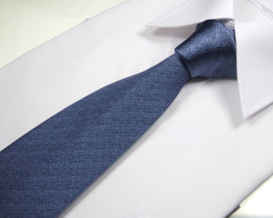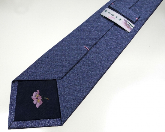 - 郡内織物「富士桜工房」シルクネクタイ『燻』梨地無地 薄藍 FAA1048