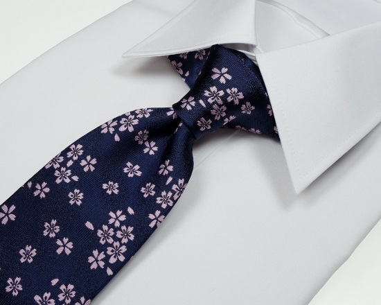 - 郡内織物「富士桜工房」シルクネクタイ 桜花 紺 FAA1062