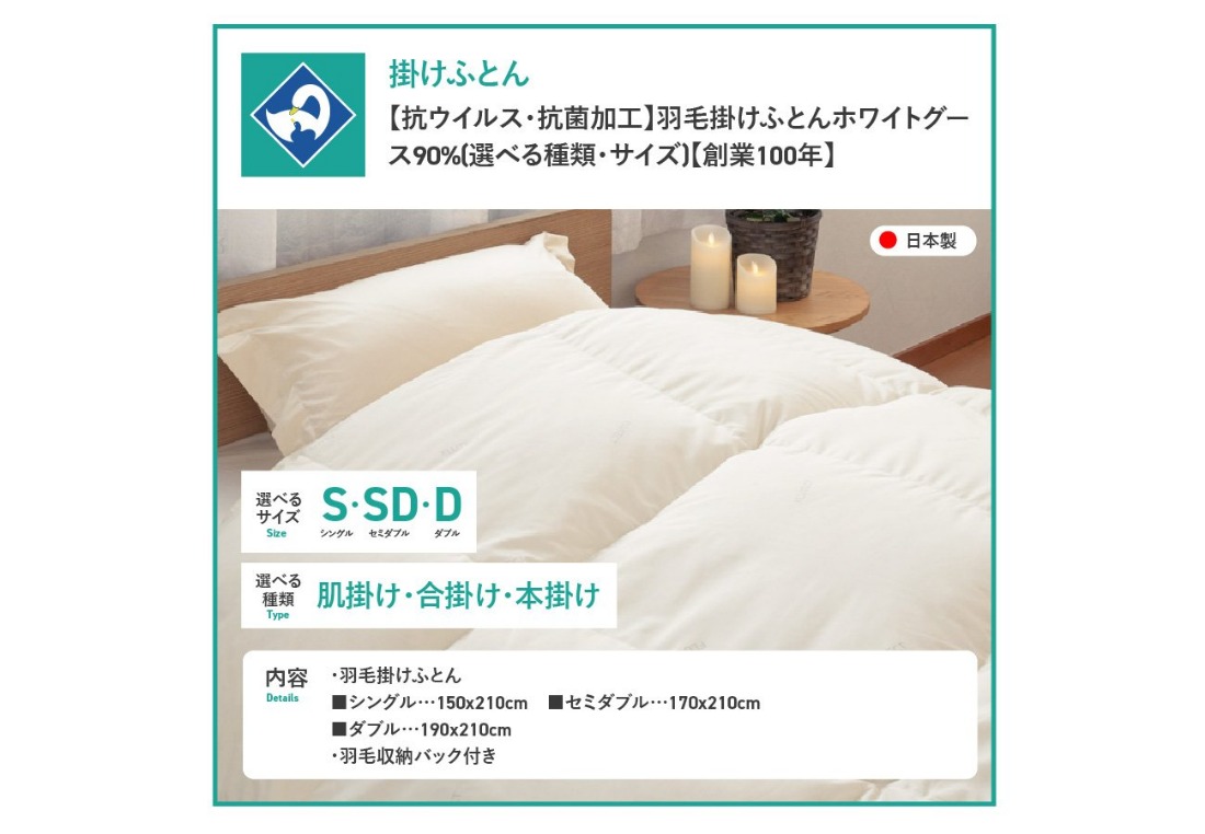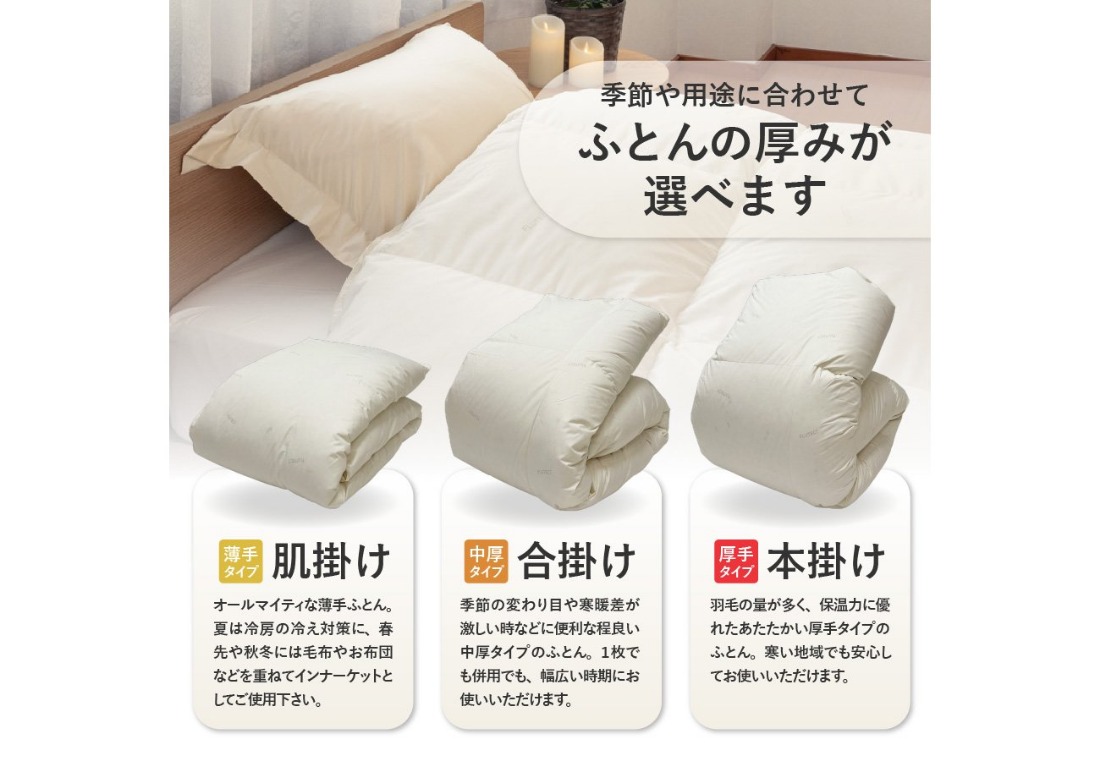 - 【抗ウイルス・抗菌加工】選べる羽毛掛けふとんホワイトグース90%(シングル~ダブル)【創業100年】 羽毛布団 掛け布団 シングル~ダブル 日本製 肌掛け 合掛け 本掛け 山梨 富士吉田