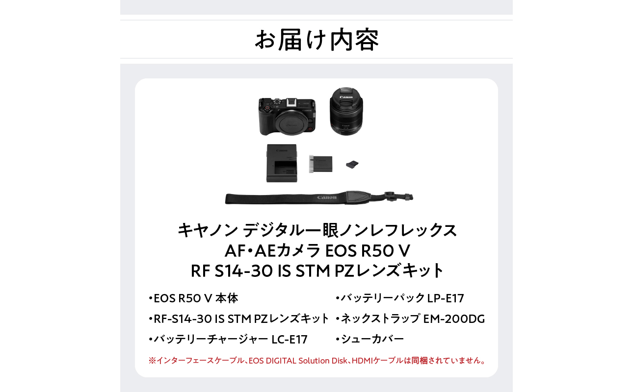 - 【R16004】キヤノン デジタル一眼ノンレフレックス AF・AEカメラ EOS R50 V・RF-S14-30 IS STM PZレンズキット