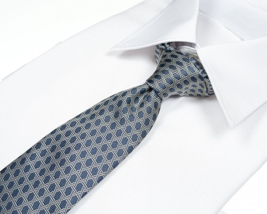 - 郡内織物「富士桜工房」シルクネクタイ 編籠目 藍生鼠 FAA1017