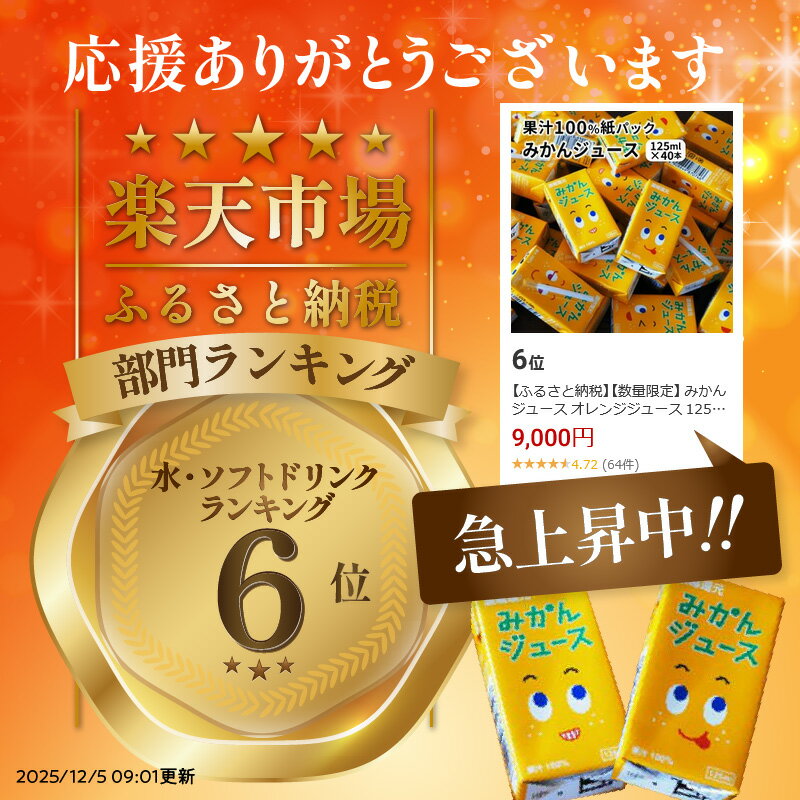 - 【ふるさと納税】数量限定 みかんジュース 無添加 125ml×40本 果汁100% 紙パック オレンジジュース ジュース 小さなお子様 飲みきりサイズ 温州みかん ビタミンC フルーツジュース ご当地ジュース ストロー付き おすそわけ お出かけ 送料無料