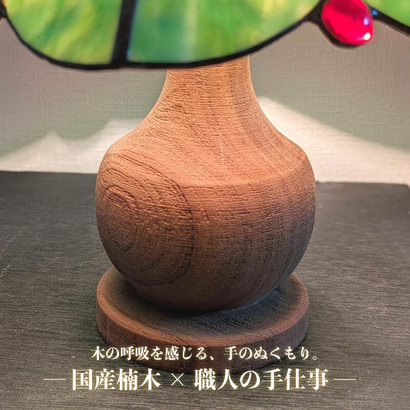 - 【ふるさと納税】ひね大木 ランプ 日根荘の灯 国産 楠木 天然木 灯火 木の呼吸 静けさ 癒し 年輪の美 西洋ランプ技法 手作り ステンドグラス シェード 白熱球 インテリア 間接照明 木製 テーブルランプ 工芸品 お取り寄せ 泉佐野市 送料無料