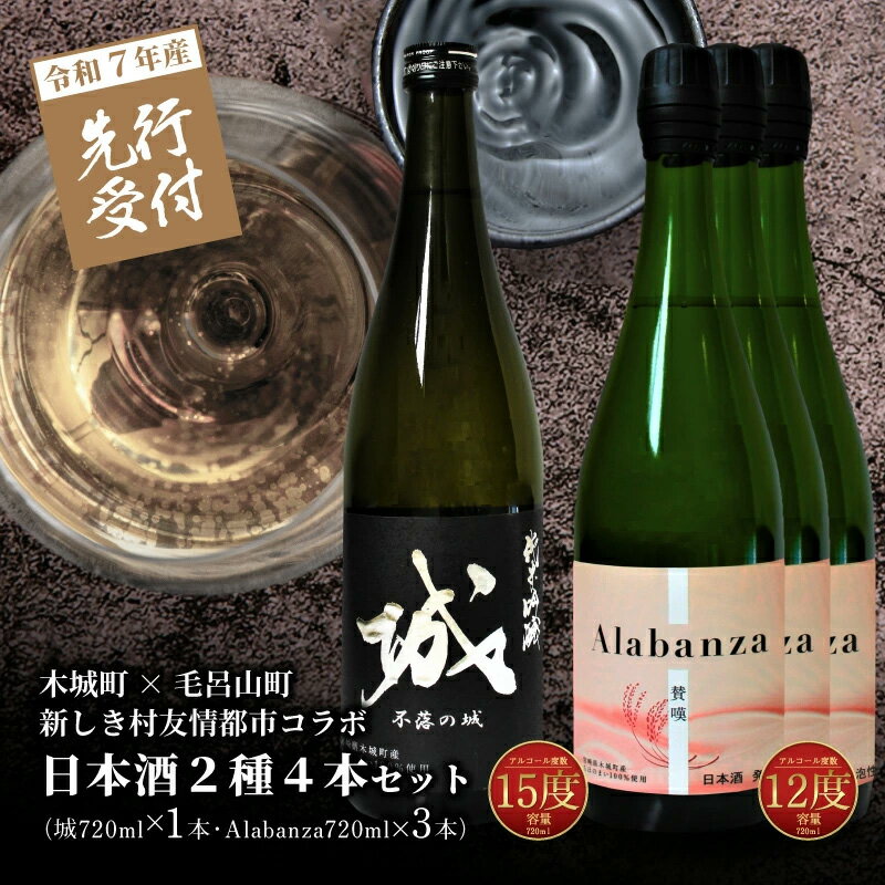 【ふるさと納税】【先行予約】令和8年産 木城町・毛呂山町 新しき村友情都市コラボ日本酒2種4本セット(城1本・Alabanza3本) - 辛口 純米吟醸 甘口のAlabanza(アラバンサ) スパークリング日本酒 日本酒飲み比べセット 炭酸 先行受付 送料無料 【宮崎県木城町】