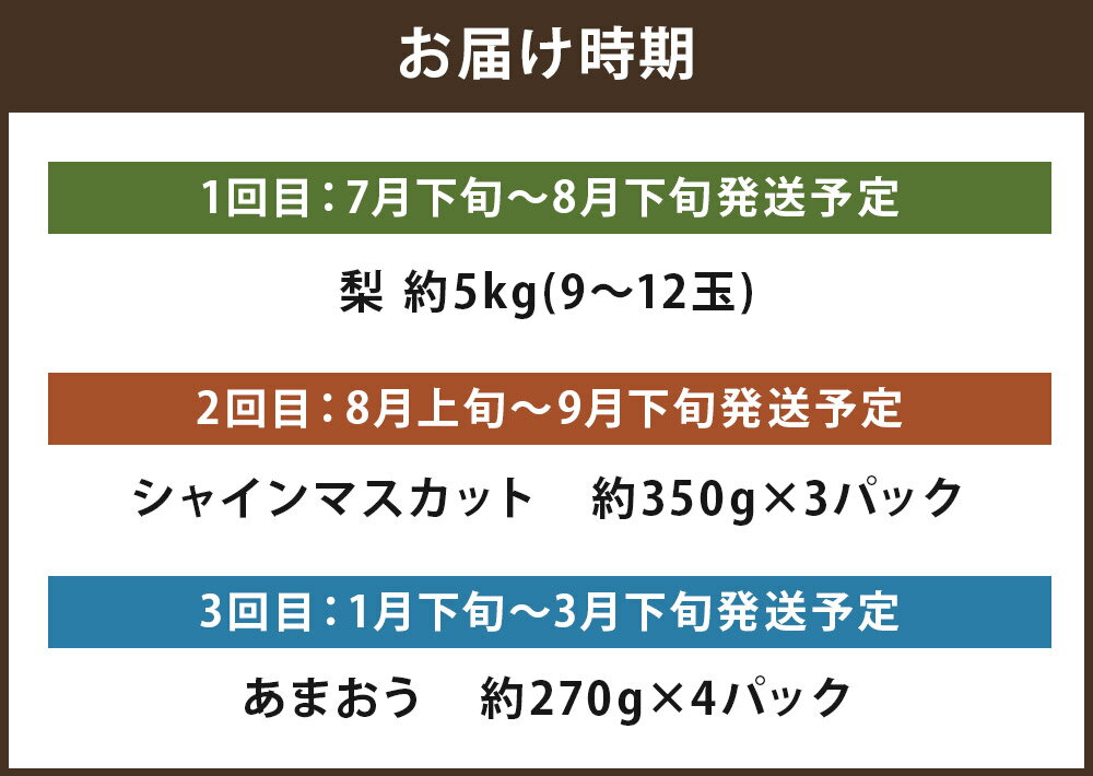 - 【ふるさと納税】【計3回定期便】数量限定 旬のフルーツ定期便(梨・シャインマスカット・あまおう) 果物 フルーツ 定期便 福岡県産 九州産 送料無料 【2026年7月下旬頃から順次発送予定】