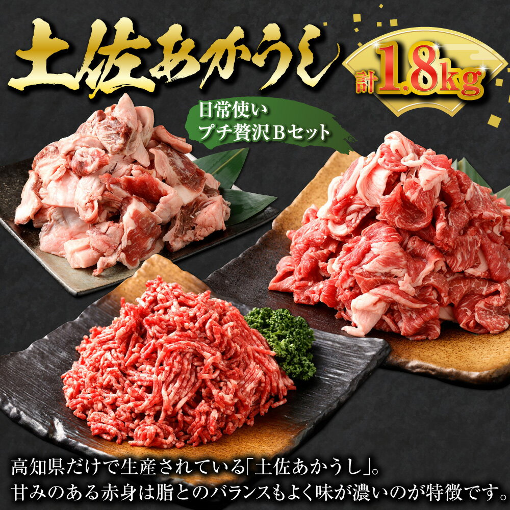 - 【ふるさと納税】【3ヶ月定期便】”出荷数0.02%の奇跡” 土佐あかうし 日常使い プチ贅沢Bセット(ミンチ・スジ・コマ切り落とし) 1ヶ月毎 3回 和牛 牛肉 お肉 赤身 褐毛和種 詰め合わせ 冷凍 高知県産 国産 高知県 香美市 送料無料