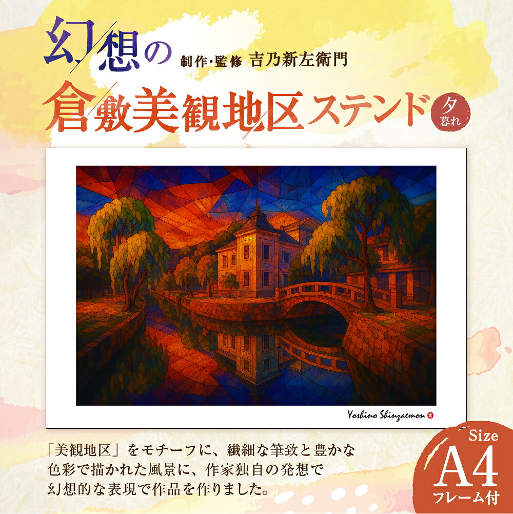 【ふるさと納税】幻想の倉敷美観地区 1枚 A4サイズ版 ステンド夕暮れ 吉乃新左衛門 現代アート 倉敷の風景 美観地区の景色 atelier SHINZAEMON 作画 原画コピー オリジナル額縁付 旅の思い出 ふるさとへの思い 部屋の雰囲気を最適化 絵画 インテリア 装飾 美術品 送料無料