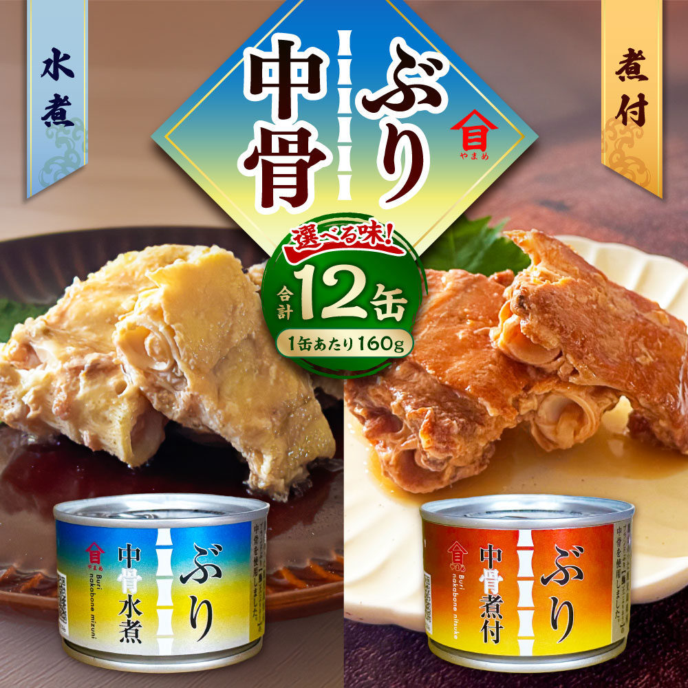 - 【ふるさと納税】<選べる味>ぶり中骨缶詰め ぶり中骨水煮 / ぶり中骨煮付 計1.92kg(160g×12缶セット) 鰤王 ぶり ブリ 魚介類 水産物 缶詰 缶詰め かんづめ 煮付け 料理 サラダ おつまみ 保存食 非常食 備蓄 簡単調理 国産 茨城県 神栖市 送料無料