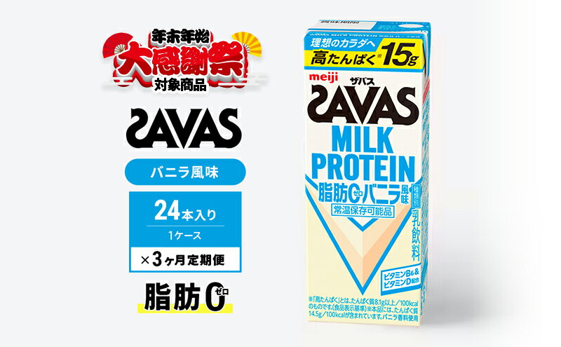 【ふるさと納税】【年末年始大感謝キャンペーン】【定期便3ヶ月】ザバス MILK PROTEIN 脂肪0 バニラ風 24本入り