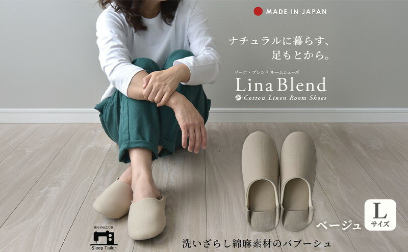 【ふるさと納税】洗いざらし綿麻素材のバブーシュ Lサイズ リネン コットン リーナブレンド ベージュ 日本製 スリッパ 綿麻素材のルームシューズ メンズ レディース キッズ 静岡 浜松市