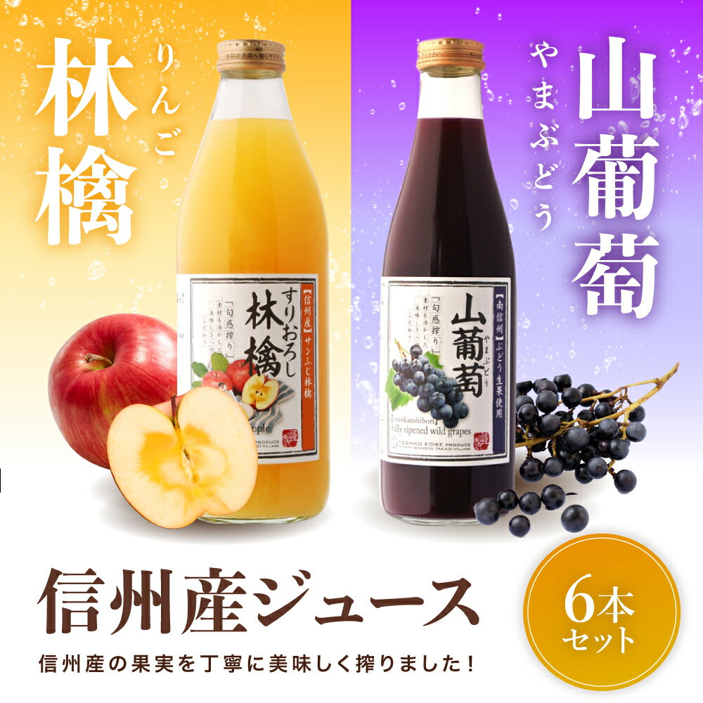 【ふるさと納税】 厳選素材 信州産 ジュース 6本 セット すりおろしりんご×3本 山ぶどう×3本 | 小池手造り農産加工所 りんご すりおろし 山ぶどう 国産 手造り てづくり 健康 飲料 長野県 飯田市 CU6