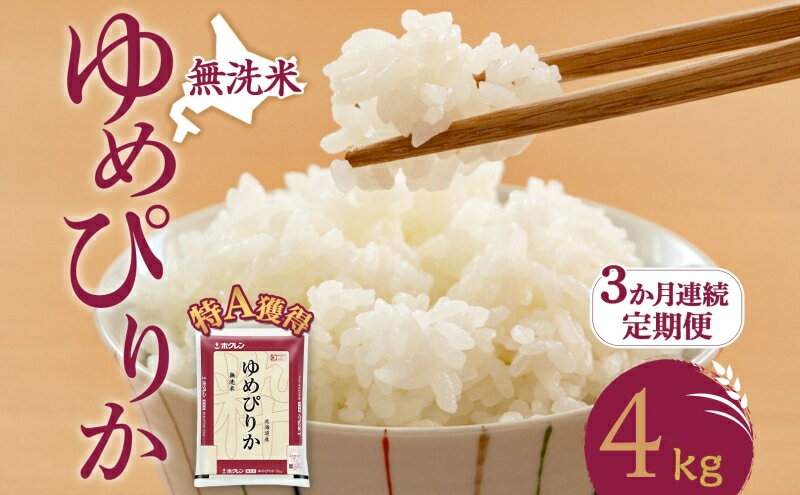 - 【ふるさと納税】3ヵ月 定期便 無洗米 北海道 ゆめぴりか4kg(ホクレン米)特A 獲得 白米 お取り寄せ ごはん 道産米 ブランド米 4キロ お米 ご飯 米 北海道米 送料無料 北海道 芦別市