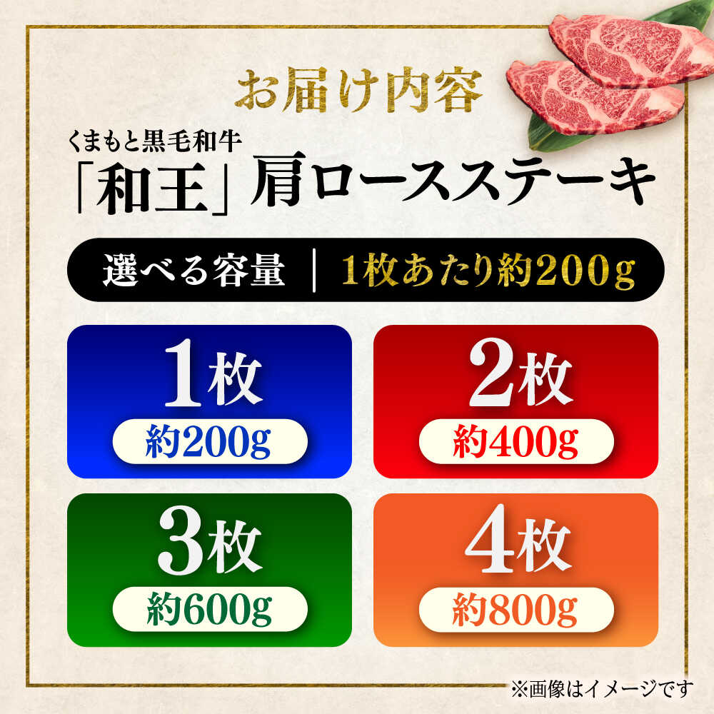 - 【ふるさと納税】《選べる容量!》くまもと 黒毛和牛 和王 肩ロース ステーキ 約200~800g(約200g×1~4枚)【菊池地域農業協同組合】[AYBR033]