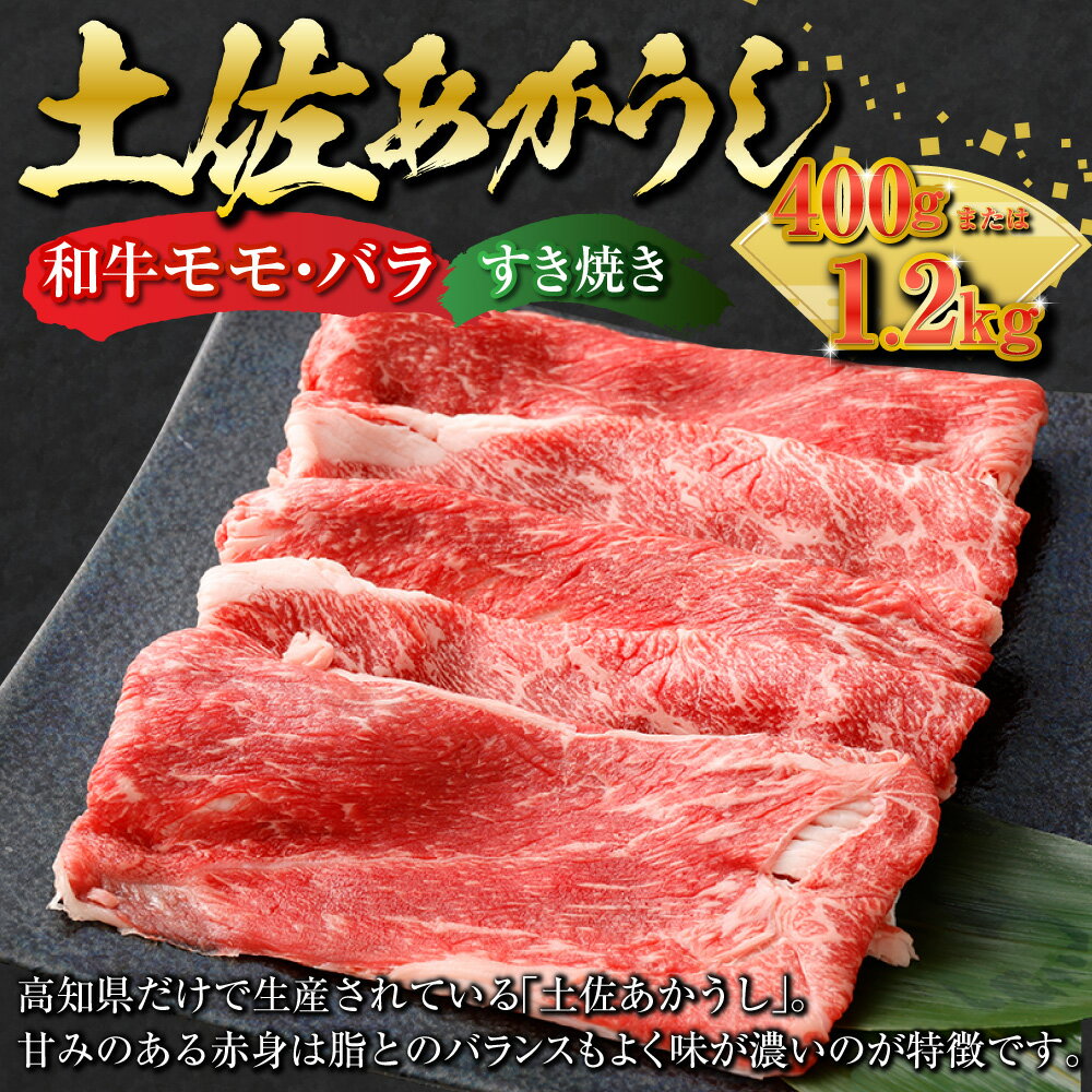 【ふるさと納税】<選べる内容量>”出荷頭数0.02%の奇跡” 土佐あかうし 和牛 モモ・バラ すき焼き 約400g / 計約1.2kg(約400g×3パック) あか牛 赤牛 牛肉 お肉 ビーフ 赤身 すき焼き すき焼 すきやき 冷凍 高知県産 国産 高知県 香美市 送料無料