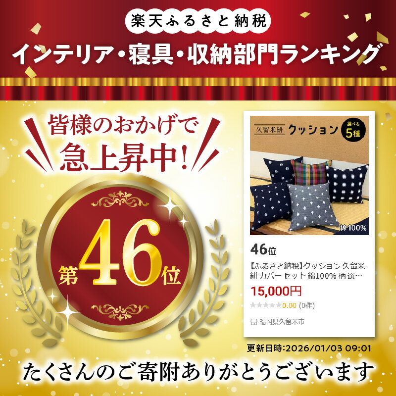【ふるさと納税】クッション 久留米絣 カバー セット 綿100% 柄 選べる 紺十字 グレー十字 紺・鈴水玉 紺・白 重ねアラレ カラフル 椅子 背もたれ 座布団 小ぶり かわいい 可愛らしい おしゃれ 伝統工芸品 重要無形文化財 お取り寄せ 福岡県 久留米市 送料無料