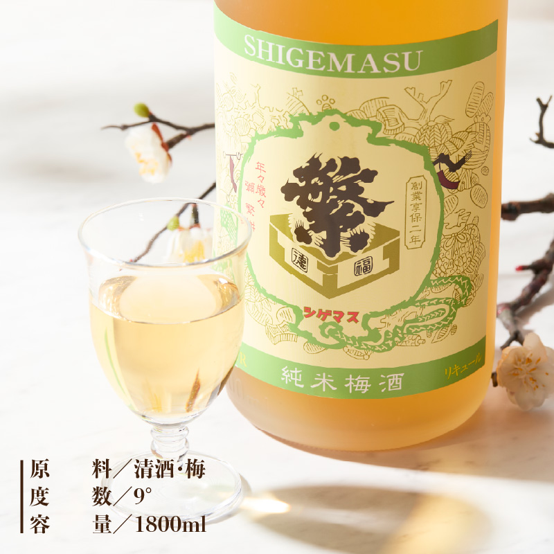 - <純米大吟醸>飛形<しげます>純米梅酒 1.8Lセット しげます 純米大吟醸 飛形 純米梅酒 吟のさと 槽搾り ギフト 地酒 日本酒 梅酒 立花町 福岡 八女