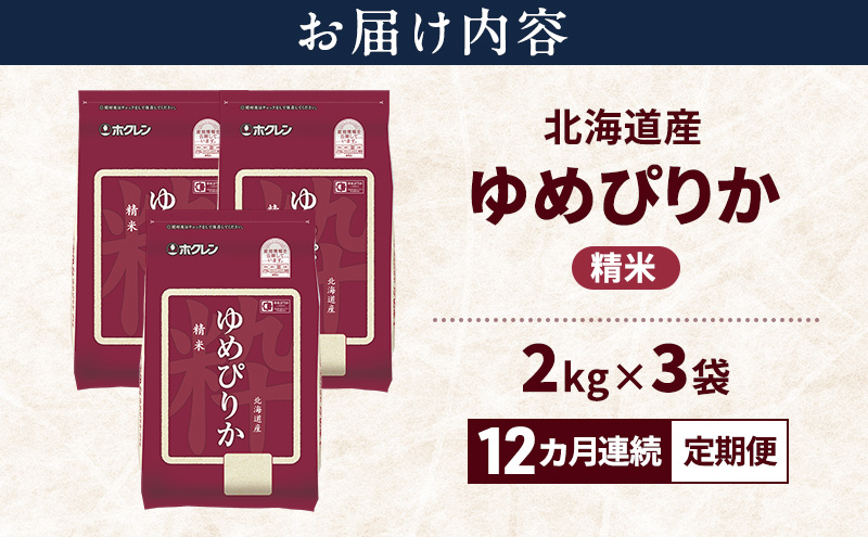 【12ヵ月連続定期便】北海道産 ゆめぴりか 精米 6kg 米 特A 獲得 白米 ごはん 定期便 定期配送 12ヵ月 道産米 ブランド米 6キロ お米 ご飯 米 北海道米 JAふらの ホクレン ホクレン米 送料無料 北海道 富良野市